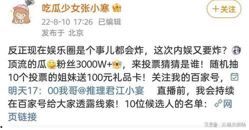 最近娱乐圈可是炸开了锅!张小寒这位八卦小能手又来爆料了,而且这次可是两个顶流明星哦!咱们就一起来聊聊这个话题,看看张小寒这次都爆了哪些猛料吧!